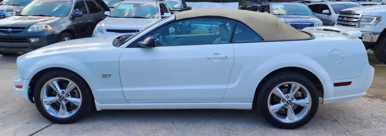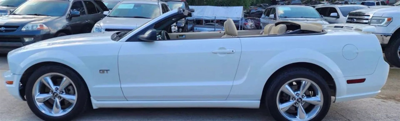 2006 Ford Mustang GT Premium Convertible ? Iconic Style, Open-Air Thrill This 2006 Ford Mustang GT Premium Convertible delivers classic American muscle with the top-down excitement only a soft-top can offer. Powered by a strong V8 engine and rear-wheel drive, it features a power convertible roof, limited-slip differential, and electronic traction control for an engaging, confident drive. Finished with leather sport bucket seats, a leather-wrapped alloy steering wheel, and power-adjustable seating with lumbar support, it?s built for both performance and comfort. Additional highlights include fog lights, rear spoiler, cruise control, anti-theft system, and steering wheel-mounted controls, making it as practical as it is fun. With its bold design and premium features, this Mustang GT is ready to turn heads and carve up the road.