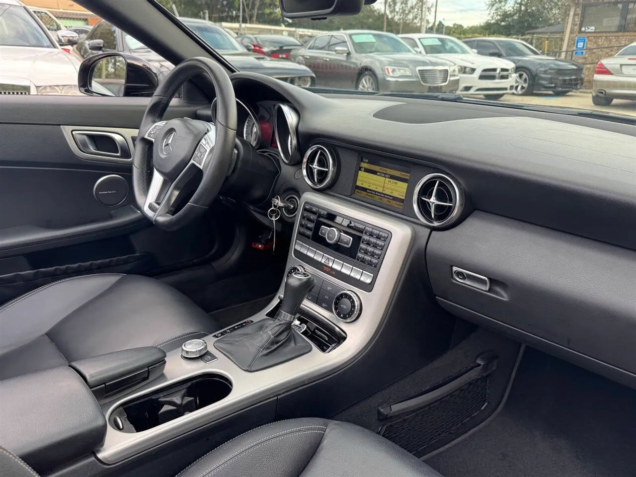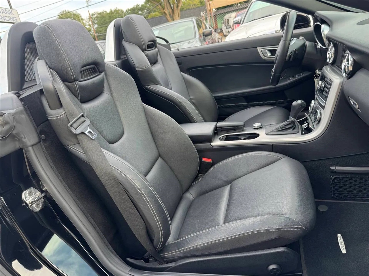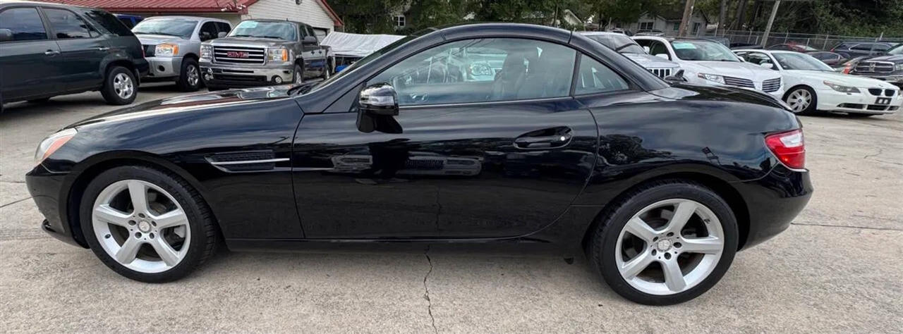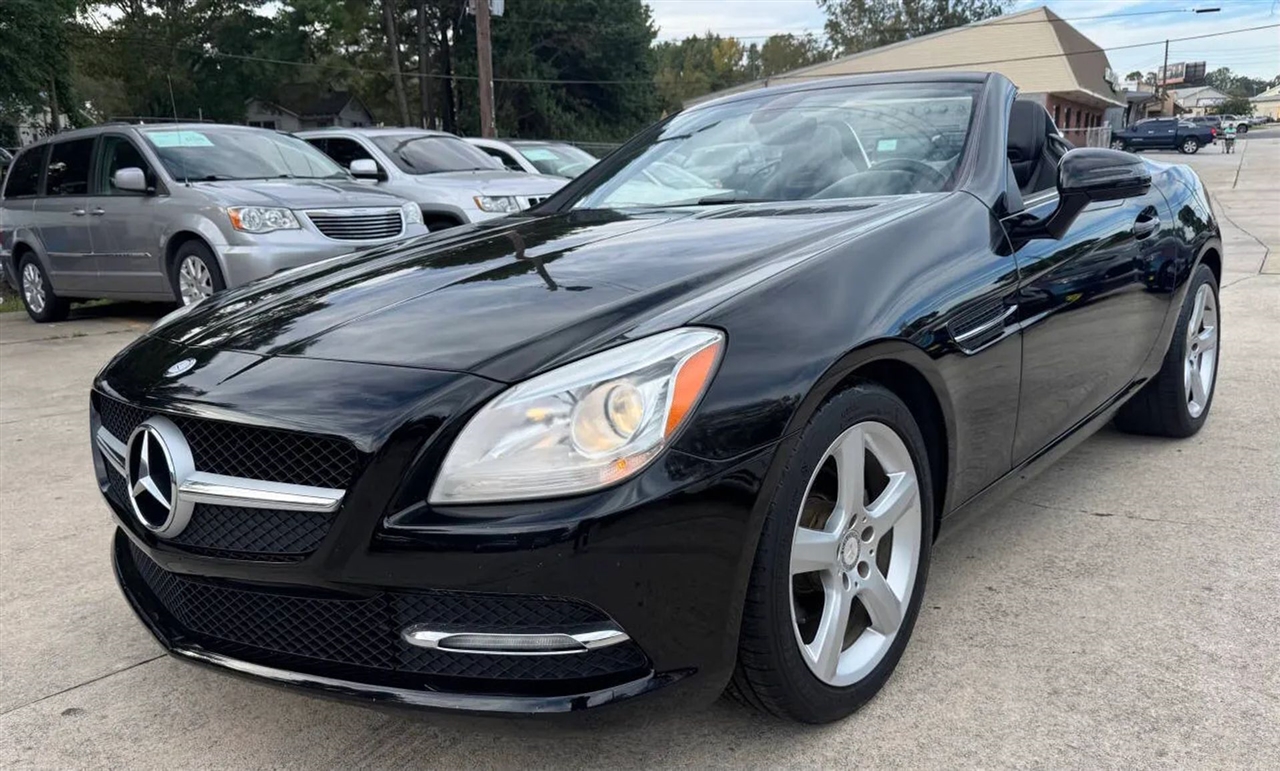 This beautiful black-on-black 2012 Mercedes-Benz SLK 250 delivers pure luxury and sporty performance in one sleek hard-top convertible. Powered by a 1.8L turbocharged engine with rear-wheel drive, it offers an engaging drive with excellent fuel efficiency. The retractable hardtop transforms it from a stylish coupe to an open-air roadster in seconds. Inside, you?ll find premium leather seats, dual-zone automatic climate control, power-adjustable sport bucket seats with memory settings, and a premium sound system with Bluetooth, satellite radio, and USB connectivity. It?s equipped with push-button start, paddle shifters, and cruise control for effortless comfort and control. Safety and stability come from features like accident-avoidance systems, traction and stability control, multiple airbags, and braking assist. With its chrome exhaust tips, alloy wheels, fog lights, and refined detailing, this SLK 250 delivers the perfect mix of elegance, technology, and driving excitement ? ideal for anyone seeking a luxury convertible that turns heads everywhere it goes.