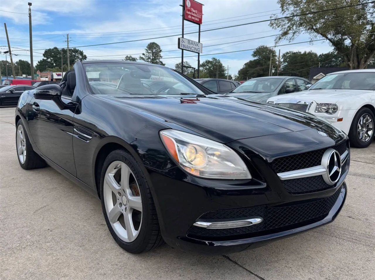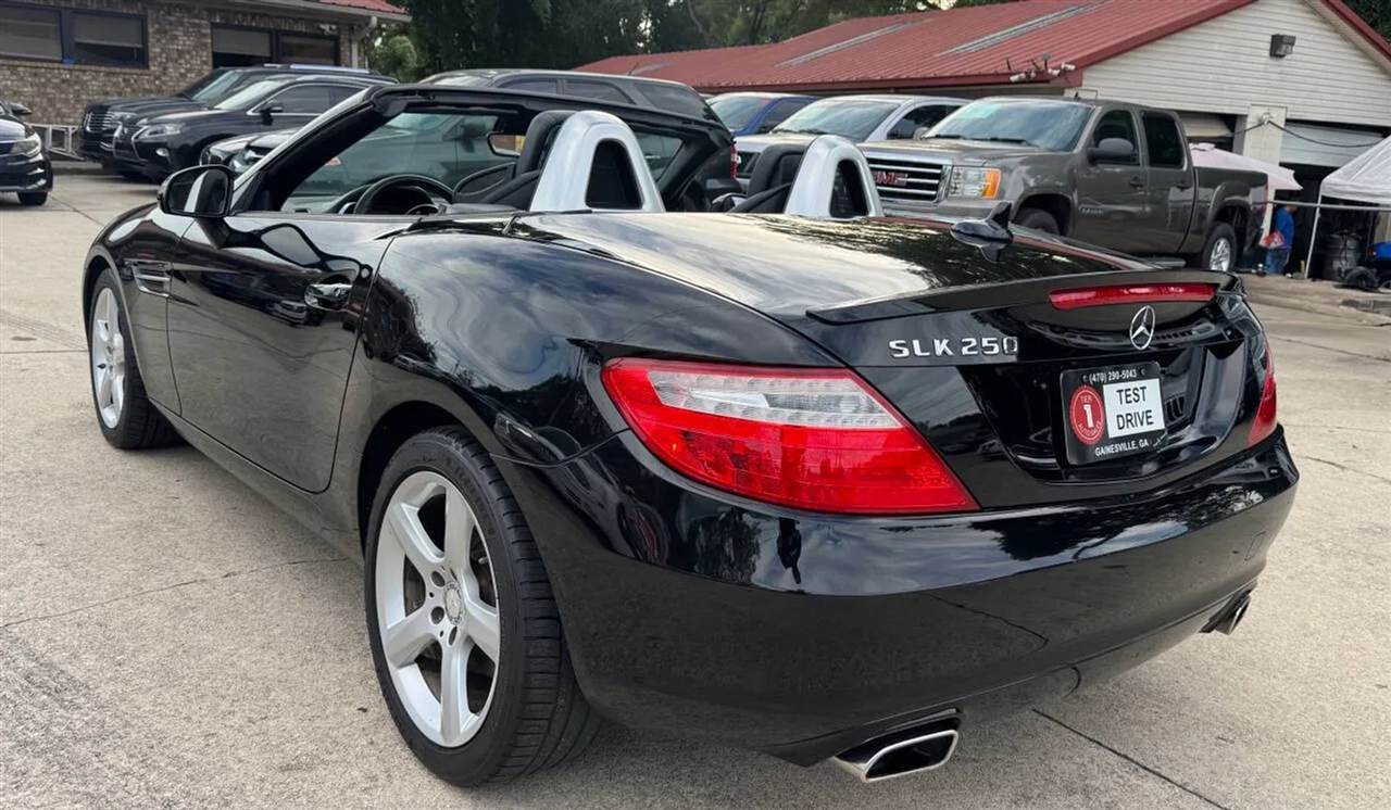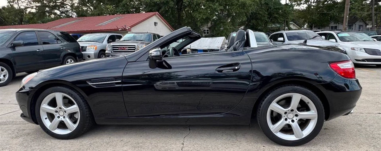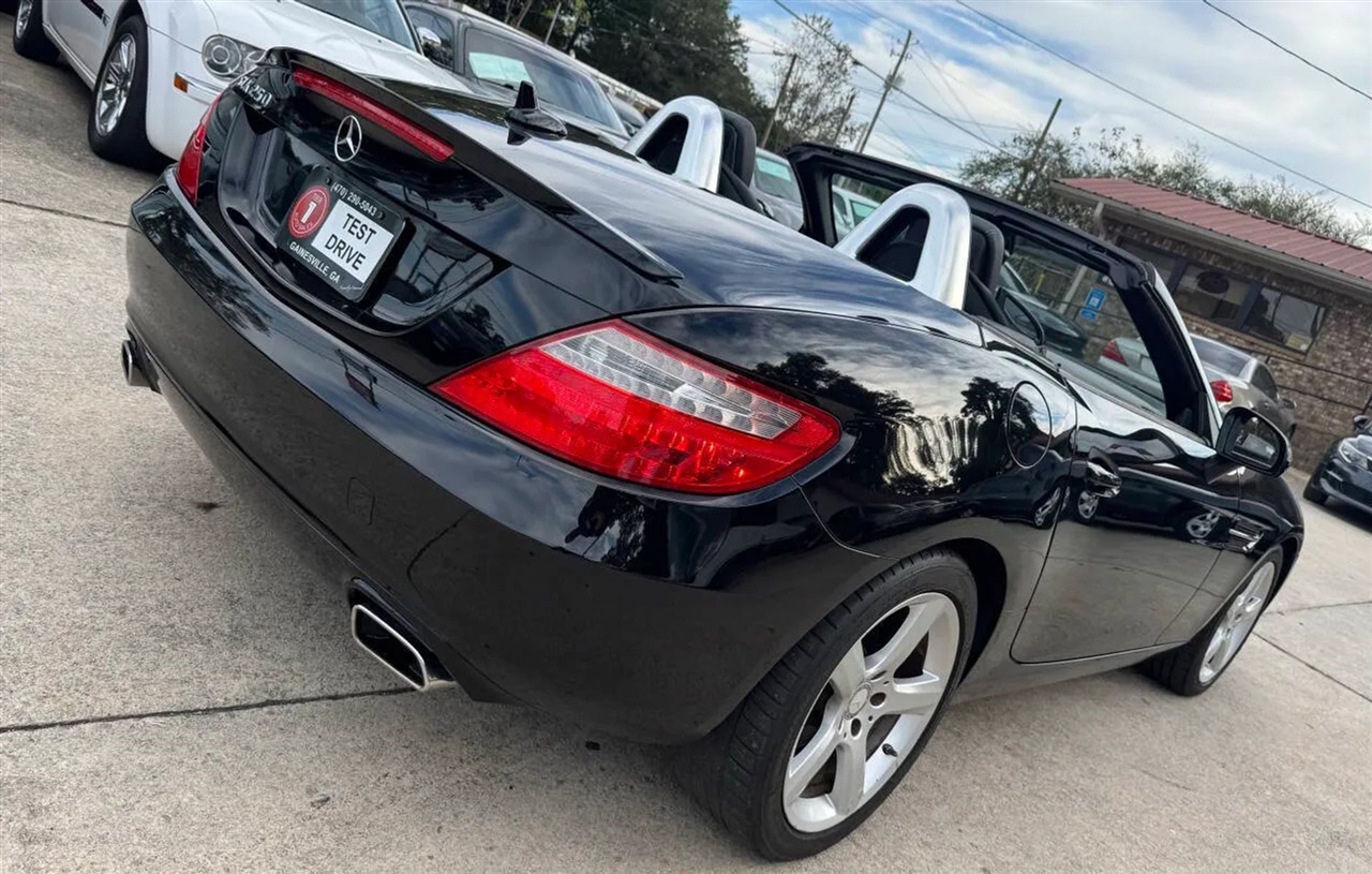 This beautiful black-on-black 2012 Mercedes-Benz SLK 250 delivers pure luxury and sporty performance in one sleek hard-top convertible. Powered by a 1.8L turbocharged engine with rear-wheel drive, it offers an engaging drive with excellent fuel efficiency. The retractable hardtop transforms it from a stylish coupe to an open-air roadster in seconds. Inside, you?ll find premium leather seats, dual-zone automatic climate control, power-adjustable sport bucket seats with memory settings, and a premium sound system with Bluetooth, satellite radio, and USB connectivity. It?s equipped with push-button start, paddle shifters, and cruise control for effortless comfort and control. Safety and stability come from features like accident-avoidance systems, traction and stability control, multiple airbags, and braking assist. With its chrome exhaust tips, alloy wheels, fog lights, and refined detailing, this SLK 250 delivers the perfect mix of elegance, technology, and driving excitement ? ideal for anyone seeking a luxury convertible that turns heads everywhere it goes.