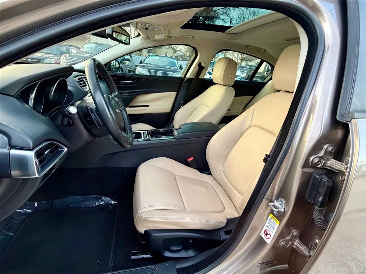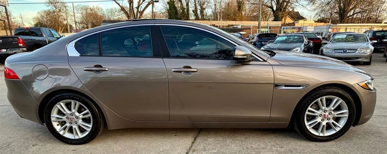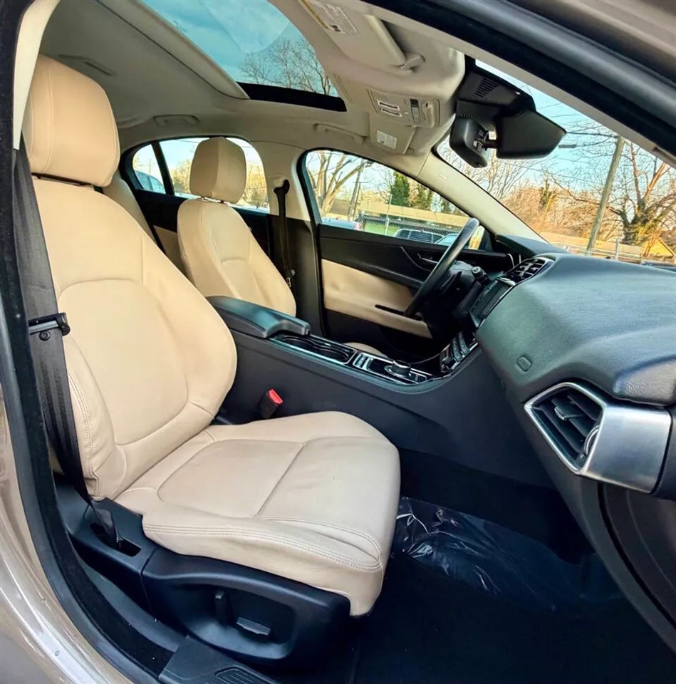 This 2017 Jaguar XE 25t Premium offers a perfect balance of British luxury, performance, and everyday drivability. Powered by a 2.0L turbocharged engine producing 240 horsepower, paired with a smooth 8-speed automatic transmission and rear-wheel drive, the XE delivers responsive handling, confident acceleration, and an engaging driving experience. The interior is well appointed with heated front seats, a heated steering wheel, heated windshield, power seats with memory, leather-wrapped steering wheel, dual-zone automatic climate control, and a panoramic sunroof, creating a refined and comfortable cabin. Technology and safety features include Bluetooth connectivity, premium sound system, rearview camera, parking sensors, blind-spot monitoring, rear cross-traffic alert, adaptive headlights, push-button start, and advanced stability and traction control systems. Finished with alloy wheels, dual exhaust, and Jaguar?s signature sleek styling, this XE is a sharp-looking luxury sedan that delivers both comfort and performance while maintaining excellent fuel efficiency for its class.