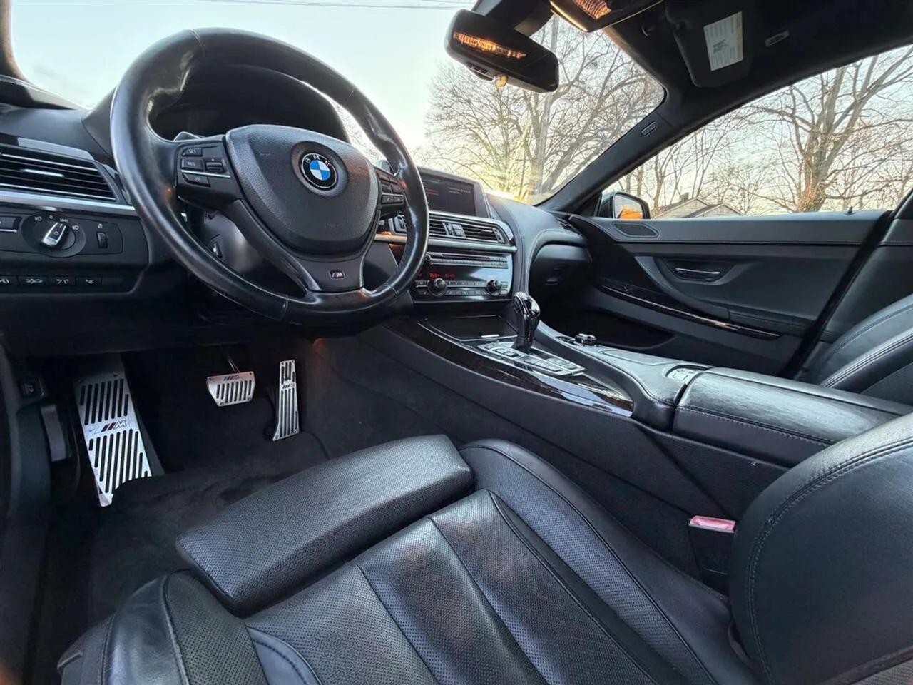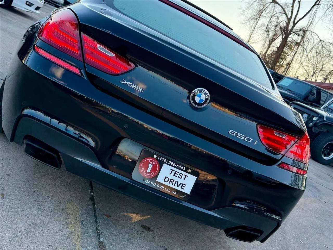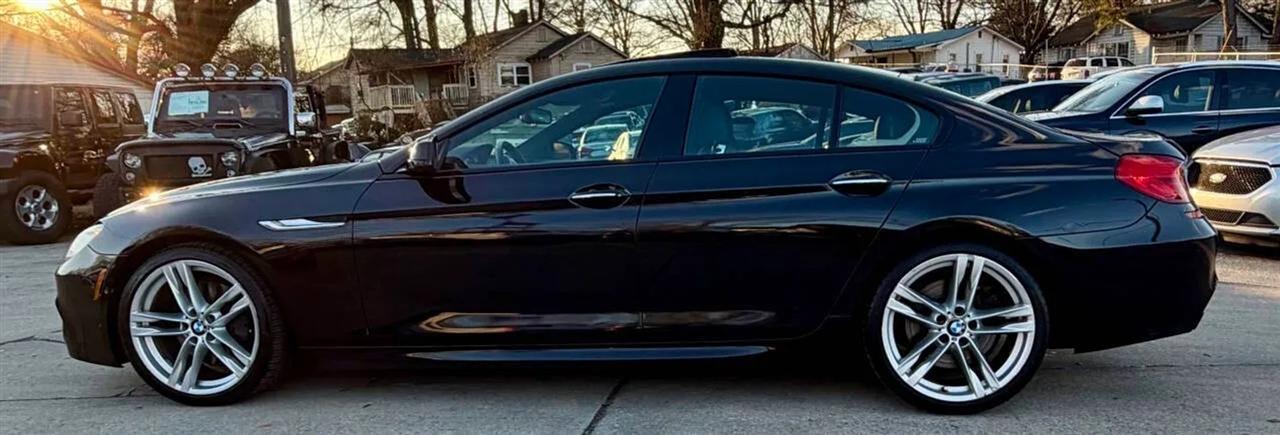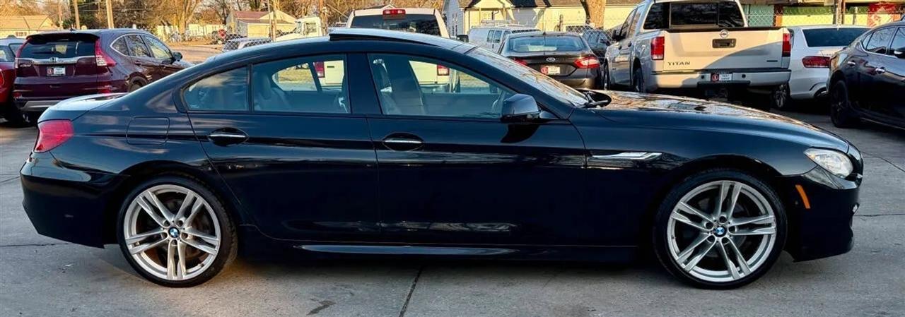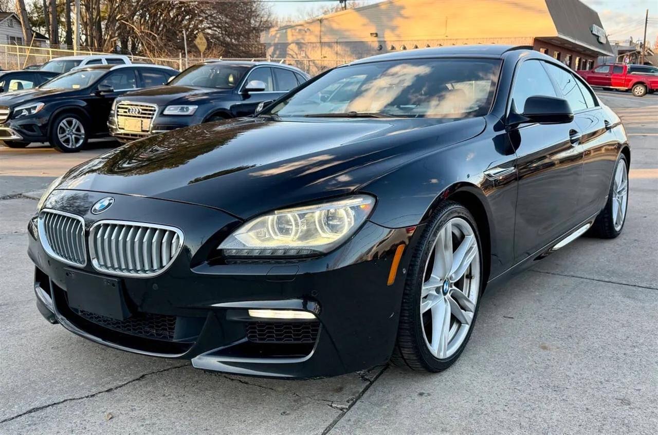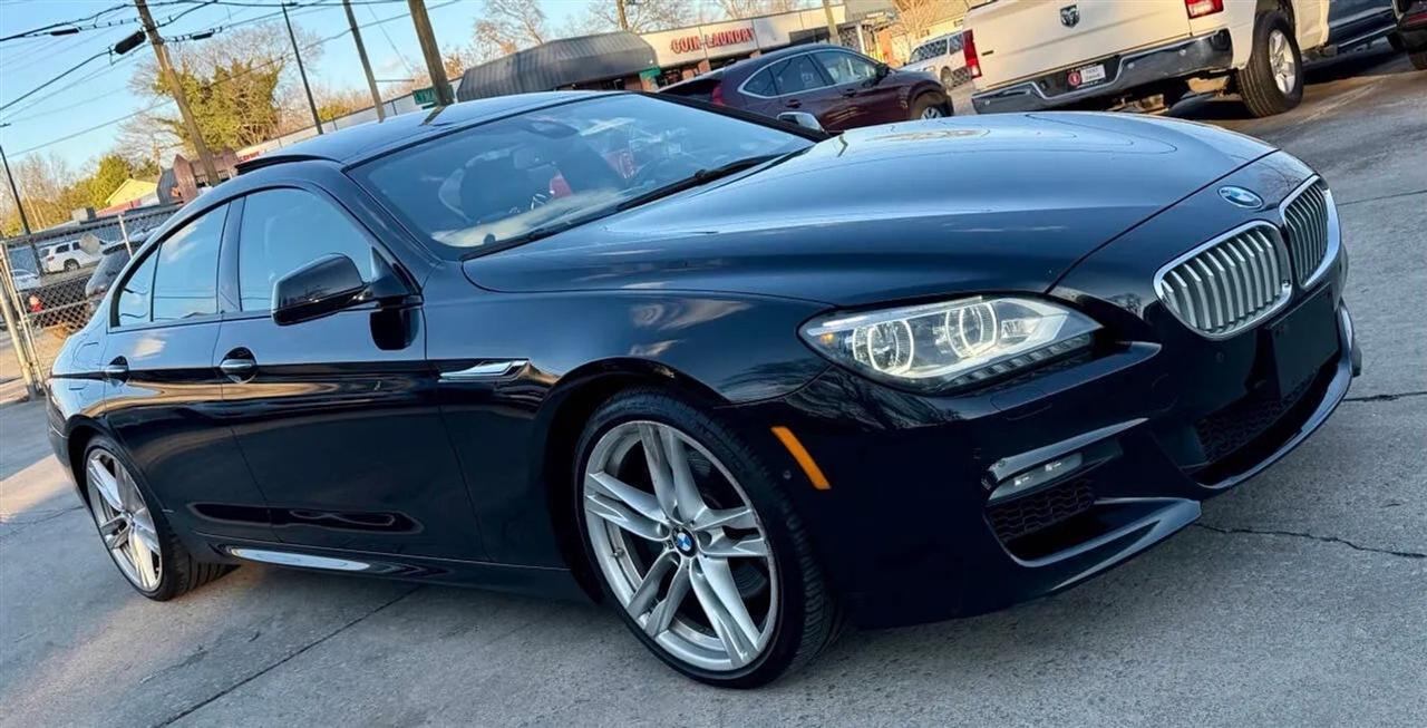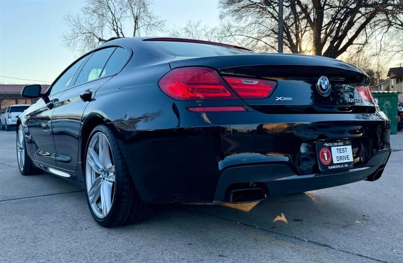 This black on black 2014 BMW 650i xDrive Gran Coupe delivers luxury, performance, and all-wheel-drive confidence in a sleek four-door design. Powered by a 4.4L twin-turbocharged V8 producing 445 horsepower and 480 lb-ft of torque, paired with an 8-speed automatic transmission, this BMW offers strong acceleration, smooth shifting, and a refined driving experience in all conditions thanks to xDrive AWD.