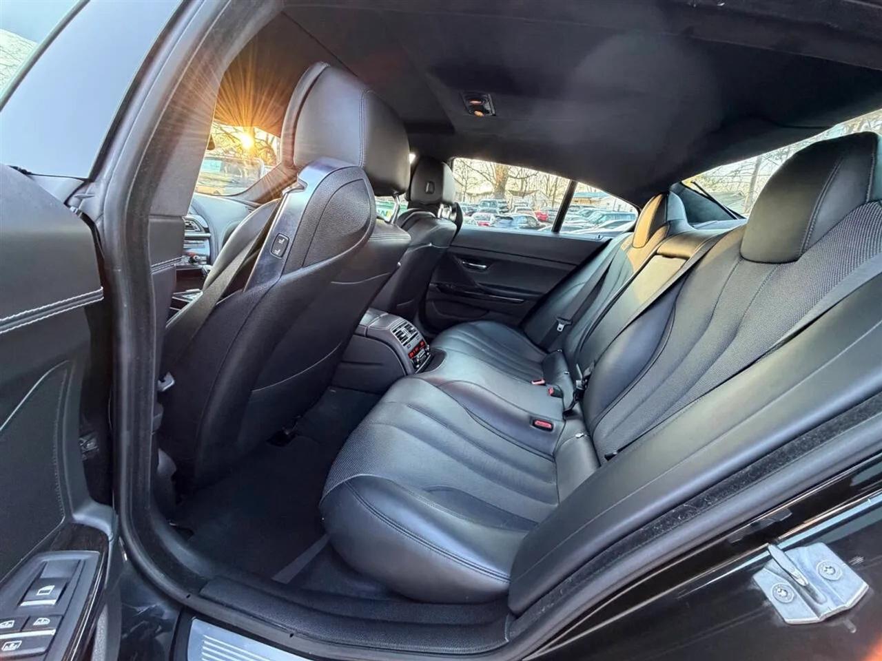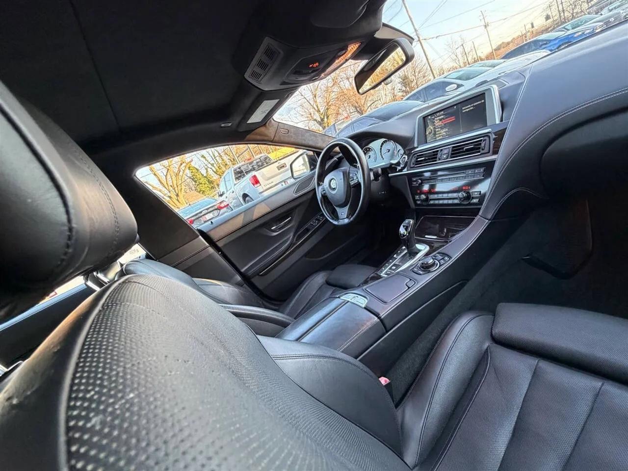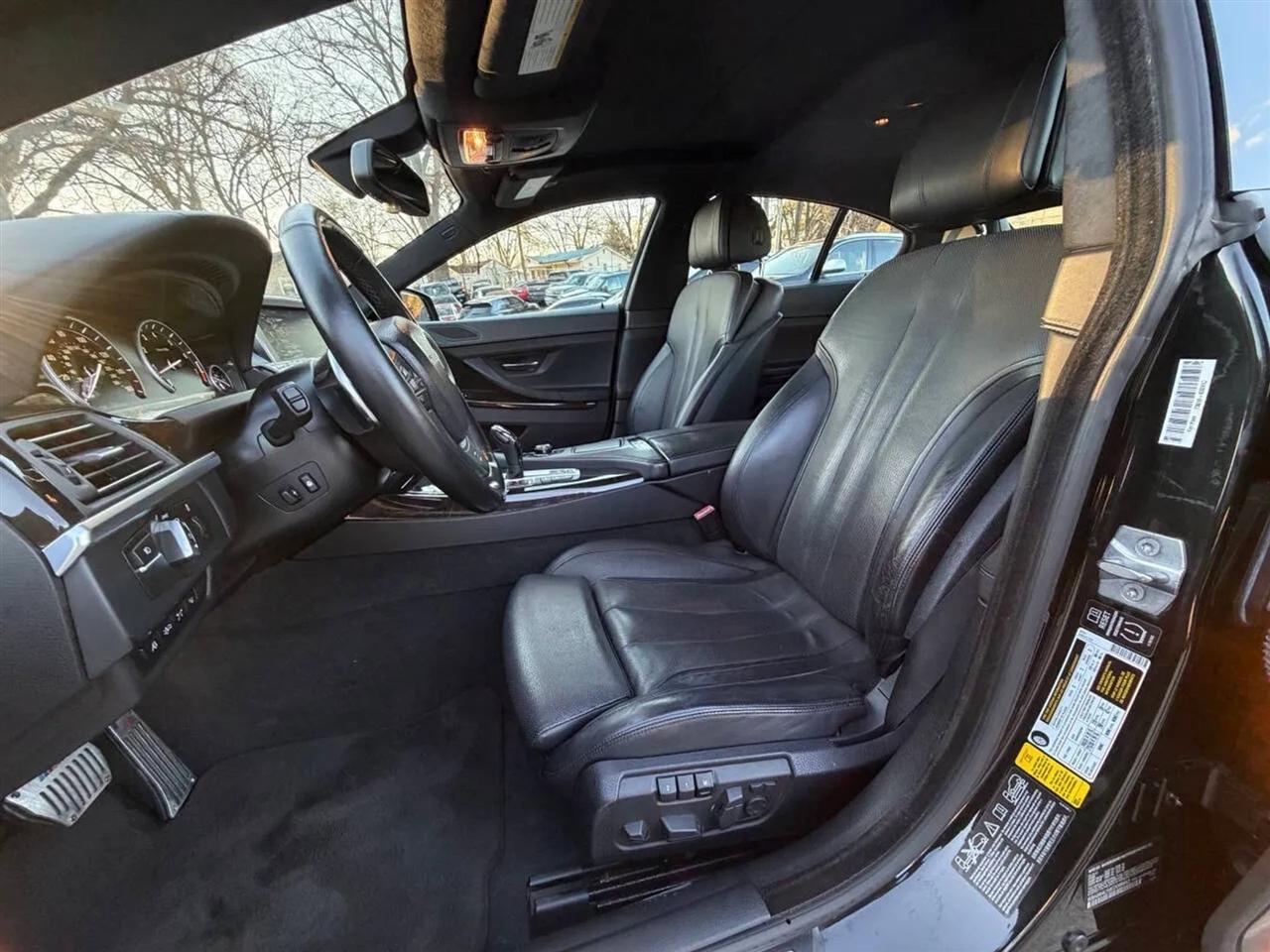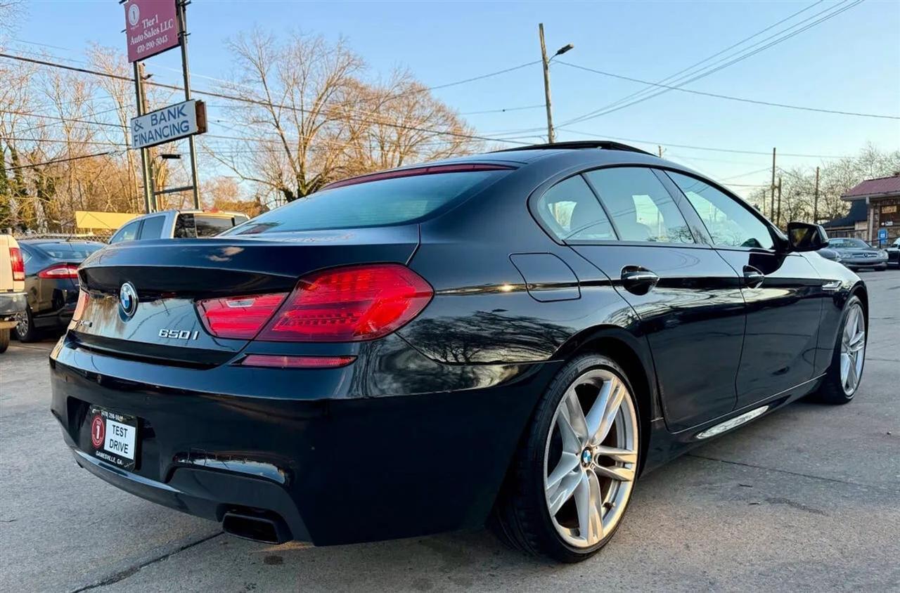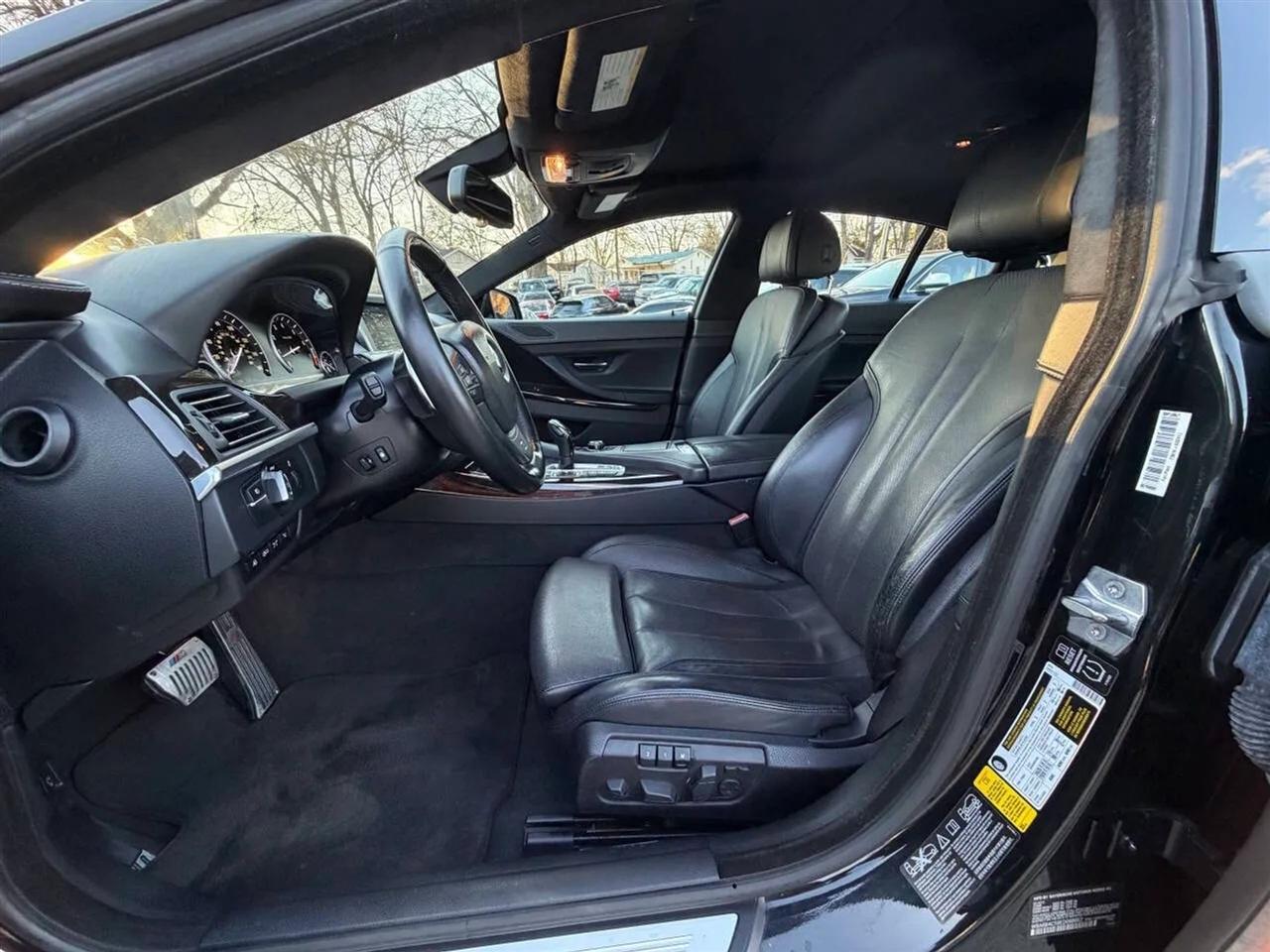 This black on black 2014 BMW 650i xDrive Gran Coupe delivers luxury, performance, and all-wheel-drive confidence in a sleek four-door design. Powered by a 4.4L twin-turbocharged V8 producing 445 horsepower and 480 lb-ft of torque, paired with an 8-speed automatic transmission, this BMW offers strong acceleration, smooth shifting, and a refined driving experience in all conditions thanks to xDrive AWD.